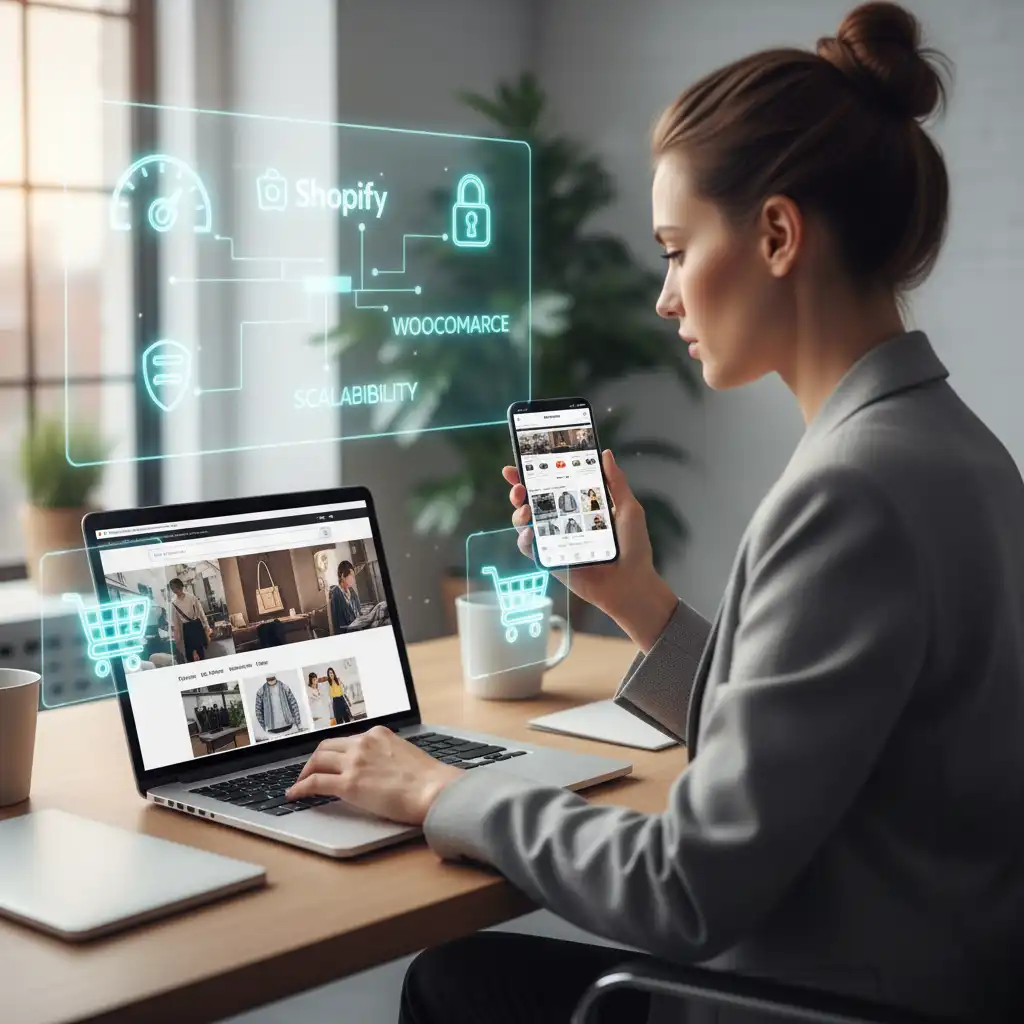 What is the difference between WooCommerce and Shopify in e-commerce development?